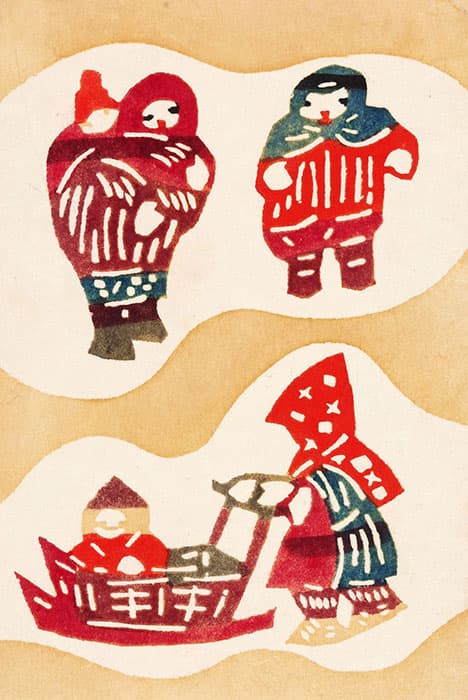 型染絵葉書「雪国の人々」(1952ころ)