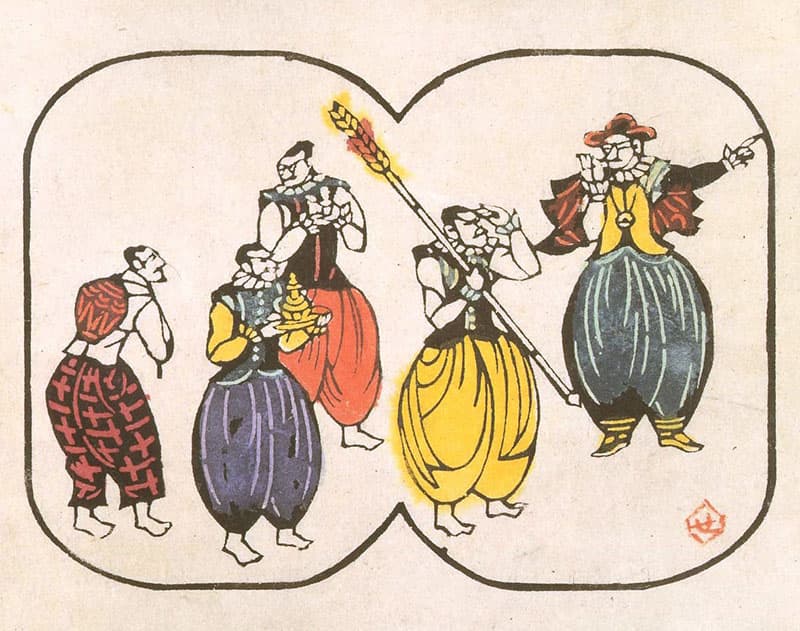 「キリシタン物語 珍しい物を持って来る南蛮人」(1949)