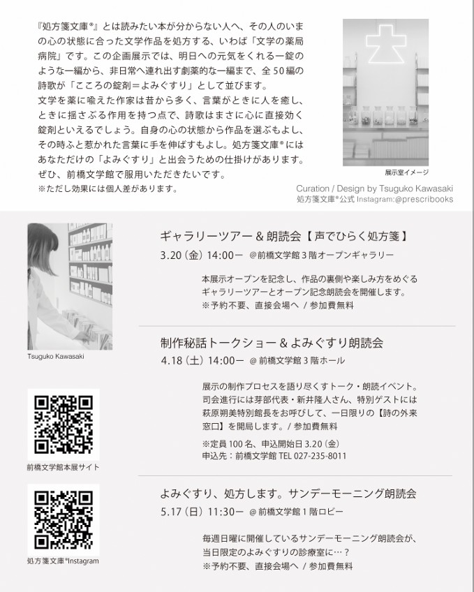 名称:「よみぐすり、処方します。処方箋文庫」萩原朔太郎記念 水と緑と詩のまち 前橋文学館