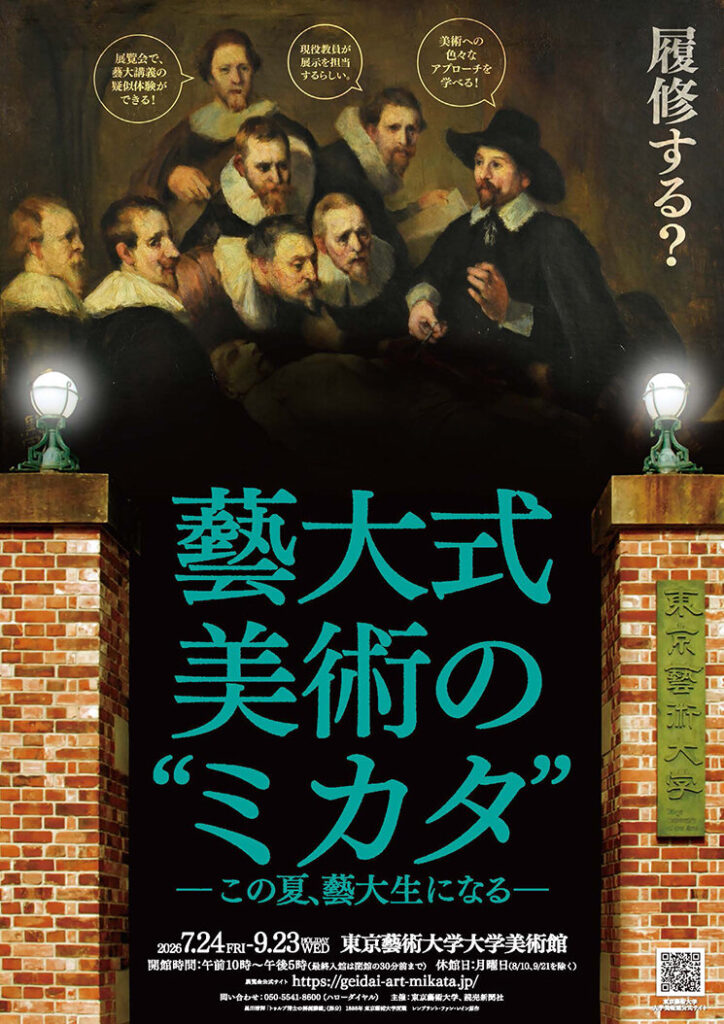 概要:本展は、東京藝術大学の教育を「展示」という形式で体験させる新たな試みであり、2026年から3年間にわたり毎夏開催されるシリーズ企画の第一回にあたる。従来の鑑賞型展覧会とは異なり、教授や講師陣による講義内容を可視化し、来館者が主体的に「学びながら観る」構造を持つ点に特徴がある。展示は藝大コレクションを基盤としながら、美術史、実技、素材、保存修復、表現論など多角的な視点から美術を再解釈する構成となる。会場には体験型コンテンツも設けられ、鑑賞行為は受動的なものから能動的な理解へと転換される。ここで提示されるのは作品そのものだけではなく、それを支える思考や技術のプロセスであり、美術を「見る」ことと「学ぶ」ことの境界を溶かす場として機能する。