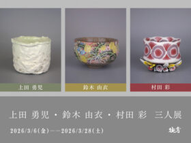 名称:「上田勇児・鈴木由衣・村田彩 三人展」桃青京都ギャラリー会期:2026年3月6日(金)~2026年3月28日(土)会場:桃青京都ギャラリー開館時間:11:00~18:00(最終日は16:00まで)休館日:日曜日 … -