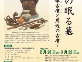 名称:企画展「武人の眠る墓―相作馬塚古墳と周辺の古墳―」石の民俗資料館会期:2026年2月28日から3月22日まで会場:石の民俗資料館 企画展示室開館時間:9:00〜17:00 展示室入室は16:30まで休館日:月曜日…