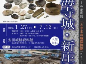 名称:ミニ企画展「とやまお城探検隊Part4 願海寺城・新庄城」安田城跡資料館会期:2026年1月27日~2026年7月12日会場:安田城跡資料館開館時間:9:00~17:00(入館は16:30まで)休館日:月曜日(祝…