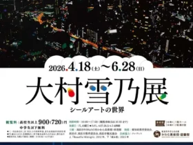 名称:「大村雪乃展 シールアートの世界」高浜市やきものの里かわら美術館・図書館会期:2026年4月18日から2026年6月28日まで会場:高浜市やきものの里かわら美術館・図書館開館時間:10時00分から17時00分まで…