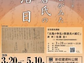 名称:トピック展「秀吉がみた朝倉氏の落日」福井県立一乗谷朝倉氏遺跡博物館会期:2026年3月20日~2026年5月10日会場:福井県立一乗谷朝倉氏遺跡博物館開館時間:9:00~17:00(最終入館16:30)休館日:毎…