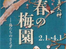 名称:「湯島天神 春の梅園」湯島天満宮宝物殿会期:2026年2月1日~2026年4月5日会場:湯島天満宮宝物殿開館時間:10:00~16:30 最終入館16:00入場料:一般500円 高校生大学生300円 小学生中学生…