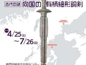 名称:特別公開「古代の謎 向国の有柄細形銅剣」長門市総合文化財センター会期:2026年4月25日~2026年7月26日会場:長門市総合文化財センター(ヒストリアながと)開館時間:9:00~17:00(入館は16:30ま…